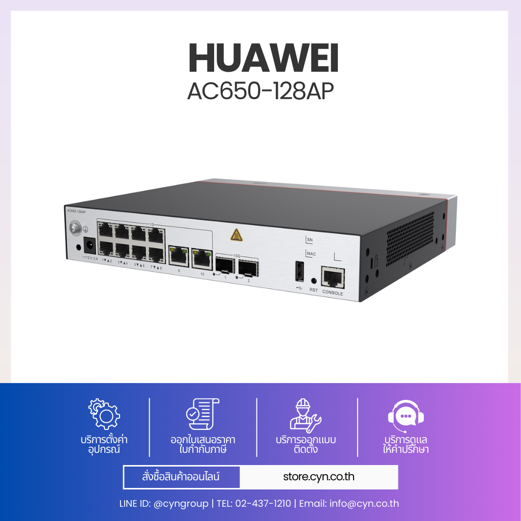 Huawei AC650-128AP เป็น Wireless Access Controller (WAC) สำหรับองค์กรขนาดเล็กถึงขนาดกลาง (SOHO / SME) ที่ต้องการระบบเครือข่ายไร้สายประสิทธิภาพสูง สามารถบริหารจัดการ Access Point ได้สูงสุดถึง 128 AP โดยไม่ต้องซื้อไลเซนส์เพิ่มเติม