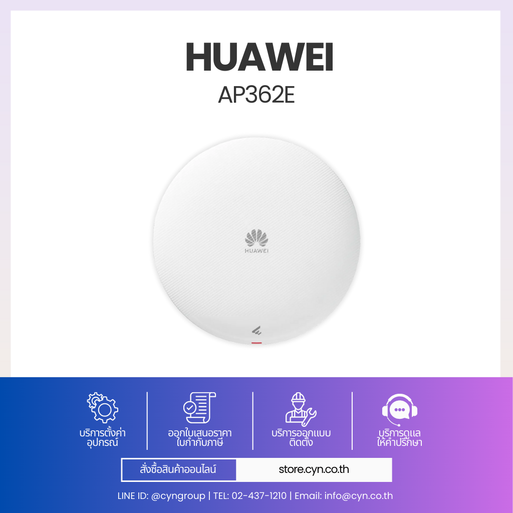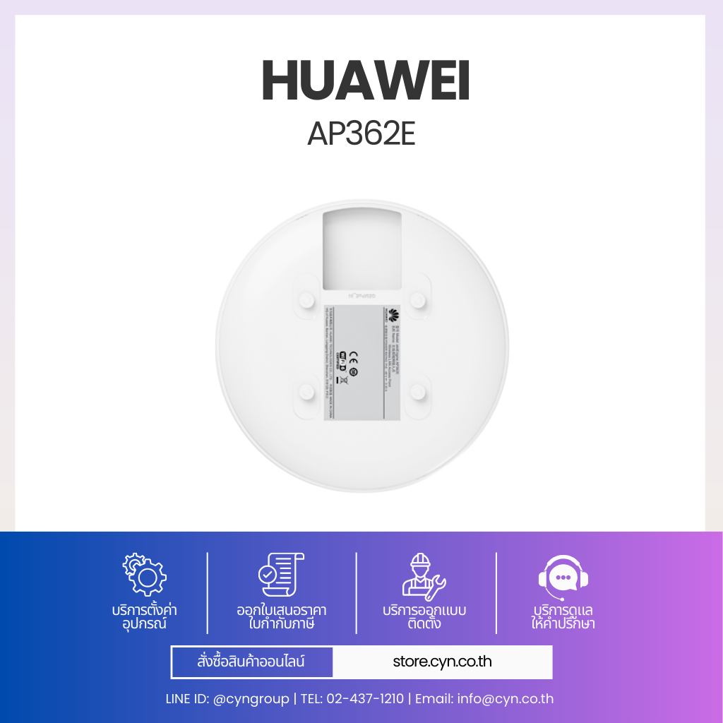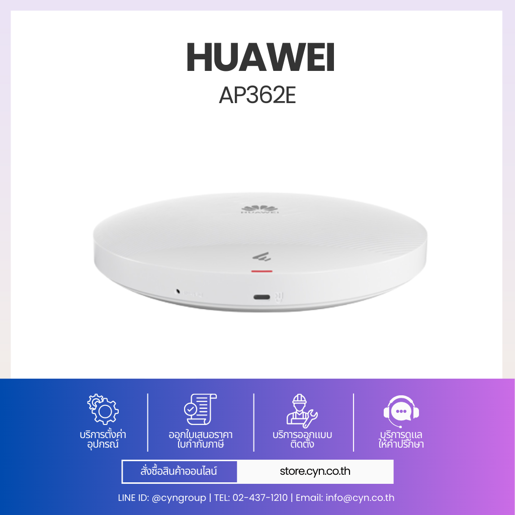 Huawei eKitEngine AP362E เป็น Indoor Access Point ที่รองรับมาตรฐาน Wi-Fi 6 (802.11ax) ให้บริการพร้อมกันบนย่าน 2.4 GHz (2×2 MIMO) และ 5 GHz (2×2 MIMO) รวมสูงสุด 4 Spatial Streams ช่วยเพิ่มความจุผู้ใช้งาน ลด Latency และให้ประสบการณ์ใช้งานที่ลื่นไหลในสภาพแวดล้อมที่มีอุปกรณ์เชื่อมต่อจำนวนมาก