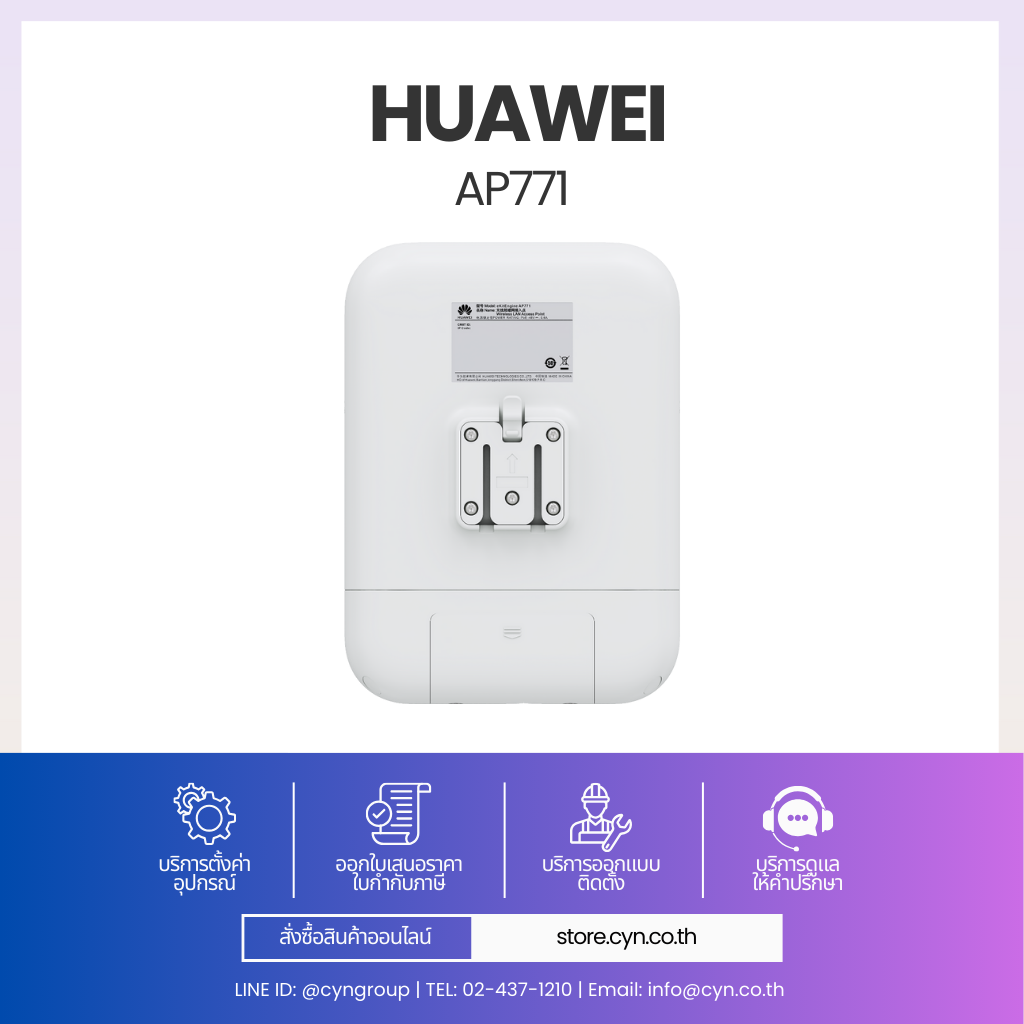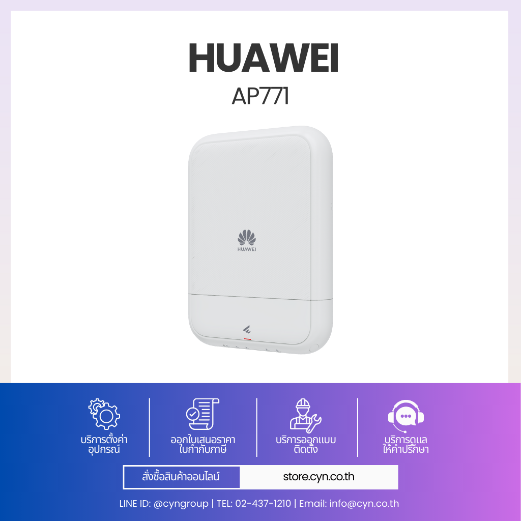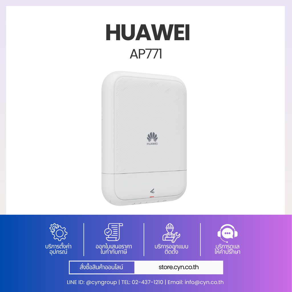 Huawei eKitEngine AP771 เป็น Outdoor Wireless Access Point มาตรฐาน Wi-Fi 7 ที่ออกแบบมาสำหรับงานภายนอกอาคารโดยเฉพาะ รองรับการทำงานพร้อมกันบนย่าน 2.4 GHz (2×2 MIMO) และ 5 GHz (2×2 MIMO) ให้ความเร็วรวมสูงสุด 3.57 Gbps