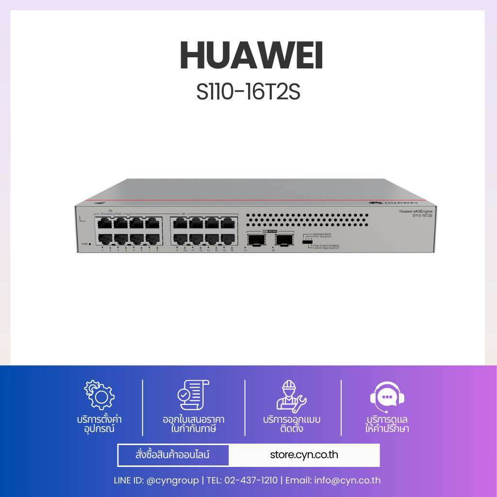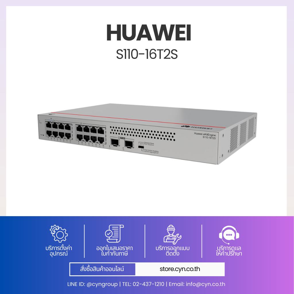 Huawei eKitEngine S110-16T2S เป็น Unmanaged Switch สำหรับงาน Access Layer ในธุรกิจขนาดเล็กถึงขนาดกลาง (SOHO / SME) รองรับการเชื่อมต่ออุปกรณ์ปลายทางด้วย 16 x 10/100/1000BASE-T Ports และมี 2 x GE SFP Uplink สำหรับเชื่อมต่อไปยัง Router หรือ Core Switch
