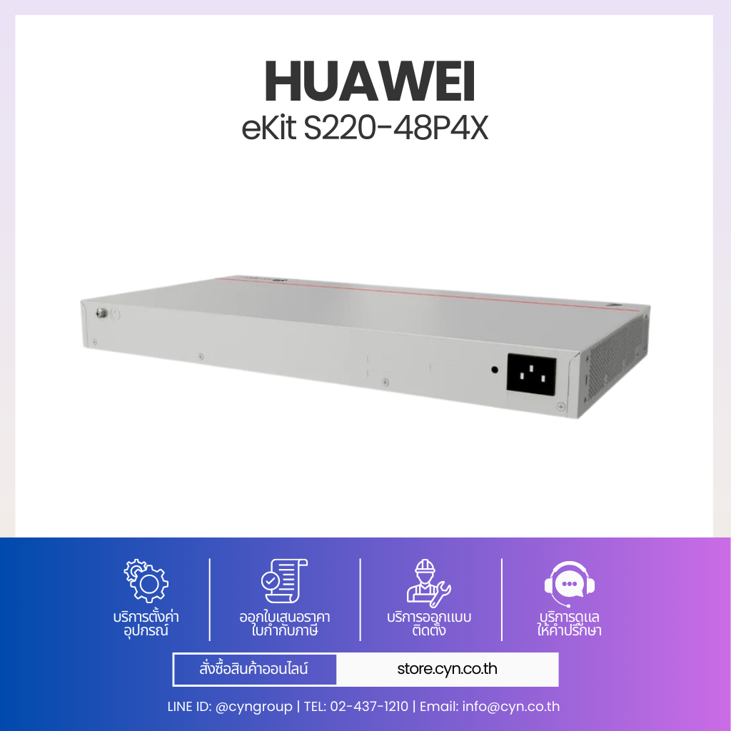 Huawei eKitEngine S220-48P4X ถูกออกแบบมาสำหรับสำนักงาน บริษัท โรงแรม โรงเรียน โรงงาน และระบบกล้องวงจรปิด โดยรองรับ PoE+ สูงสุด 380W สำหรับจ่ายไฟให้ Access Point, IP Camera, IP Phone ได้อย่างมีประสิทธิภาพ