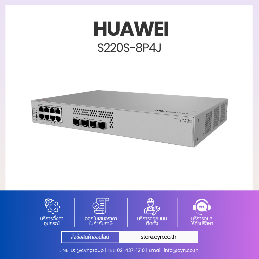 Huawei eKitEngine S220S-8P4J เป็นสวิตช์ในตระกูล S220S Series ที่ออกแบบมาสำหรับตลาด SME / SMB โดยเฉพาะ รองรับการทำงานระดับ Layer 2 Managed พร้อมฟีเจอร์เครือข่ายครบถ้วนสำหรับสำนักงาน ร้านค้า โรงเรียน และระบบอาคารอัจฉริยะ
