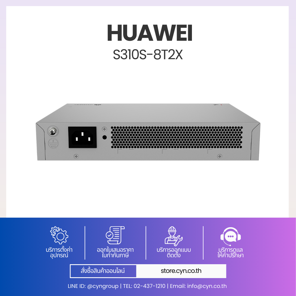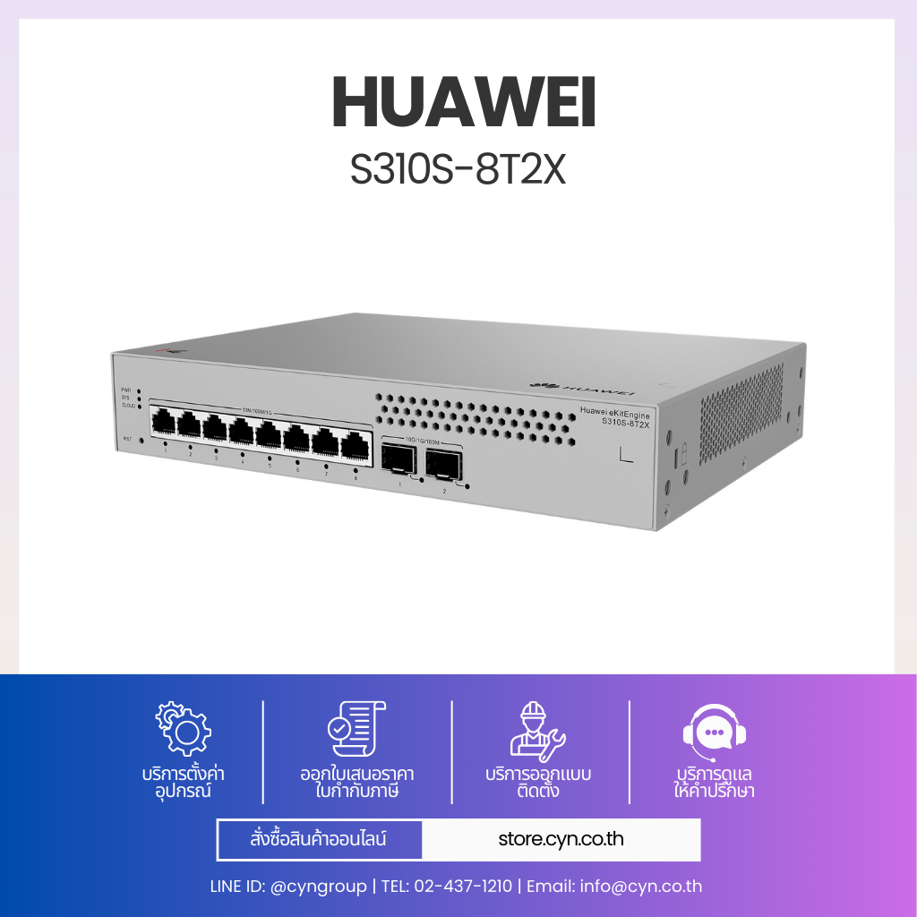 Huawei eKitEngine S310S-8T2X เป็นสวิตช์ตระกูล S310S Series สำหรับตลาด SME / SMB ที่ต้องการฟีเจอร์มากกว่า L2 ทั่วไป โดยรองรับการทำงานระดับ L2+ (Static Routing) ช่วยแยก VLAN และทำ Routing พื้นฐานได้โดยไม่ต้องใช้ Router เพิ่ม