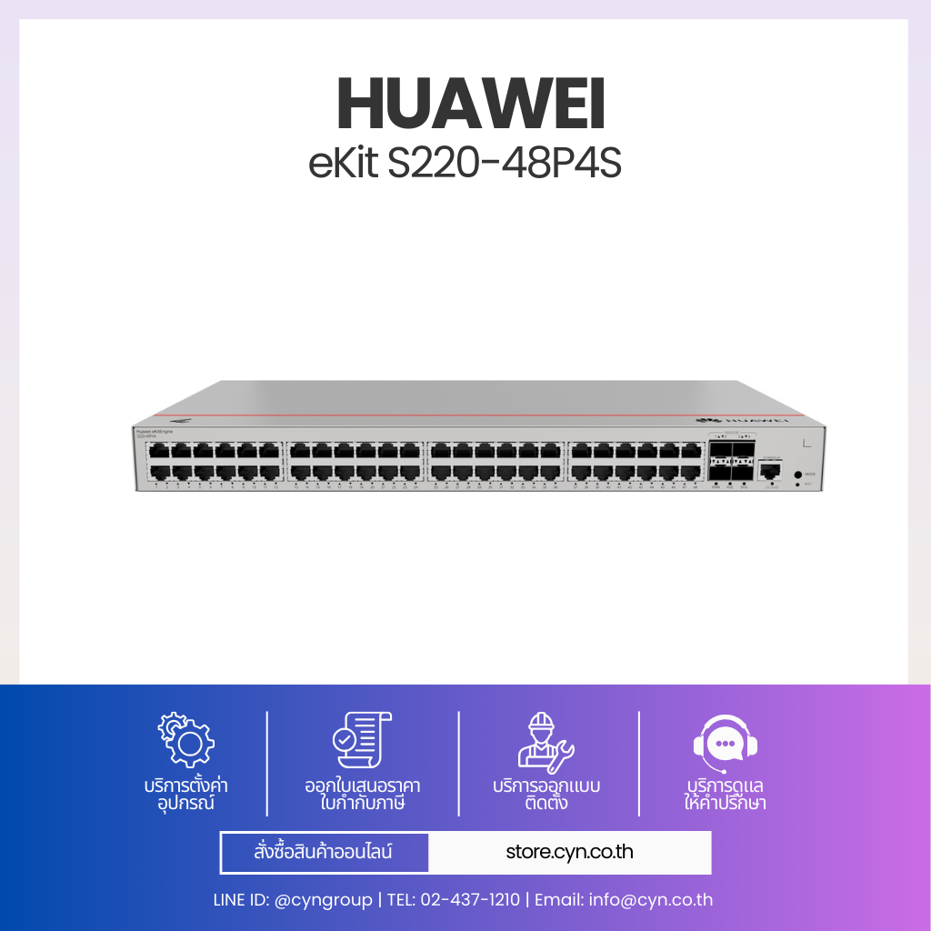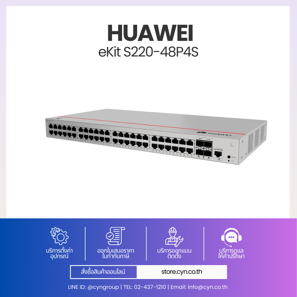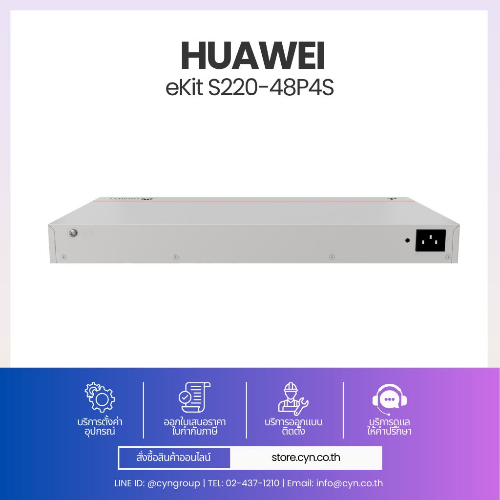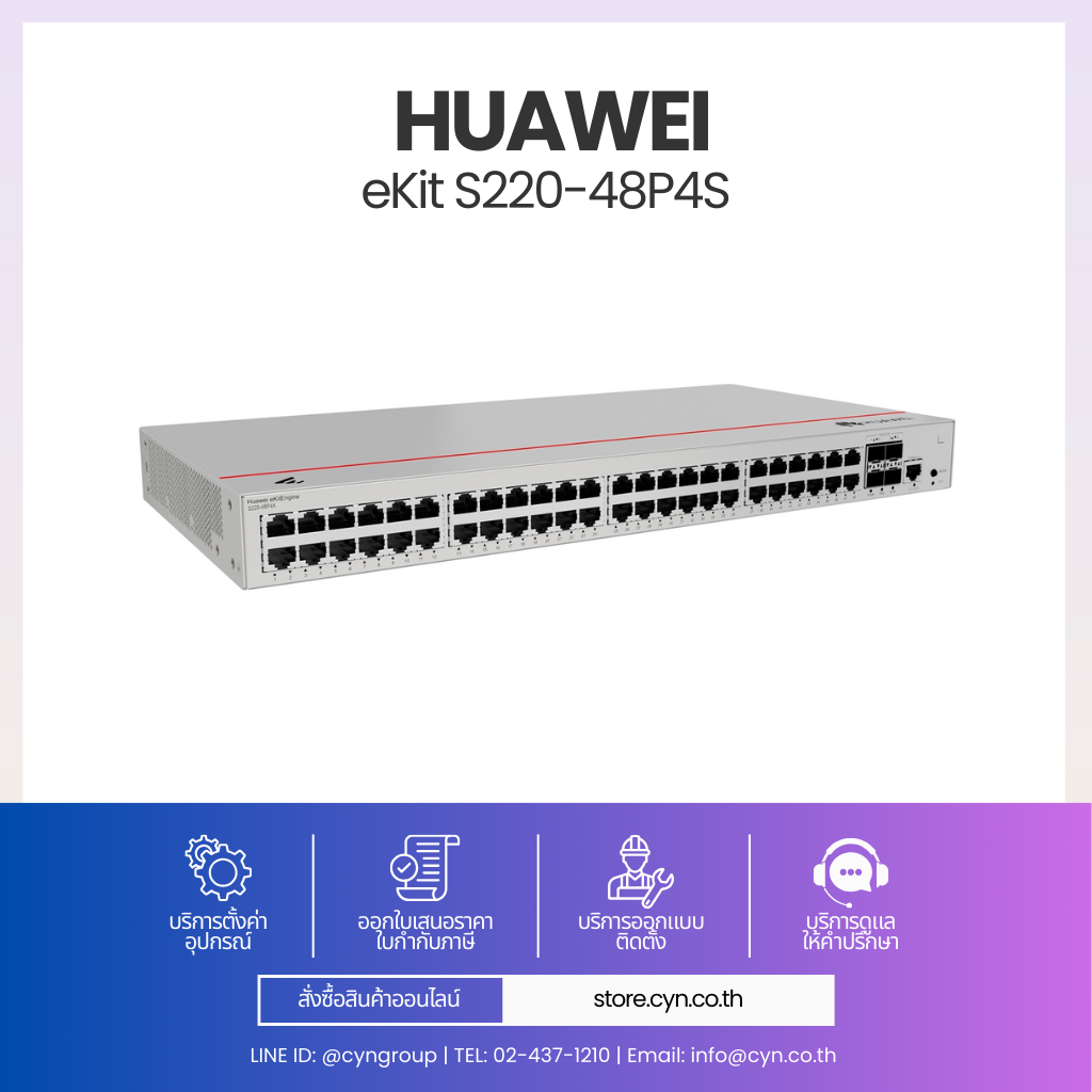 Huawei eKitEngine S220-48P4S ถูกออกแบบมาเพื่องาน Access Layer ในสำนักงาน โรงเรียน โรงแรม โรงงาน และระบบกล้องวงจรปิด รองรับ PoE+ Budget 380W สำหรับจ่ายไฟให้ Access Point, IP Camera และ IP Phone ได้อย่างมีประสิทธิภาพ