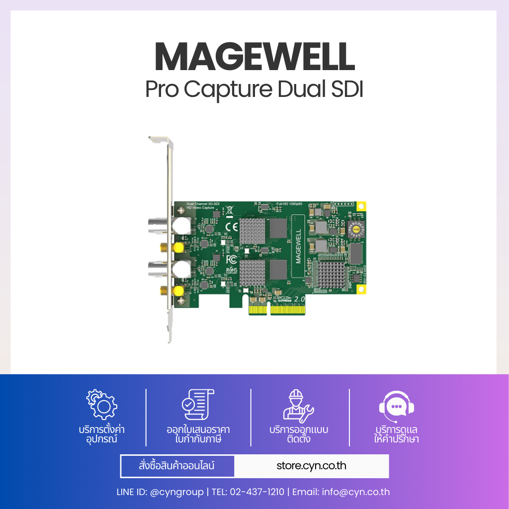 Magewell Pro Capture Dual SDI คือการ์ด Capture แบบ PCIe สำหรับจับสัญญาณ SD/HD/3G-SDI พร้อมกัน 2 ช่อง รองรับคุณภาพระดับ Broadcast ให้ภาพคม สีแม่น และ Latency ต่ำมาก เหมาะสำหรับงาน Live Streaming และ Production มืออาชีพ