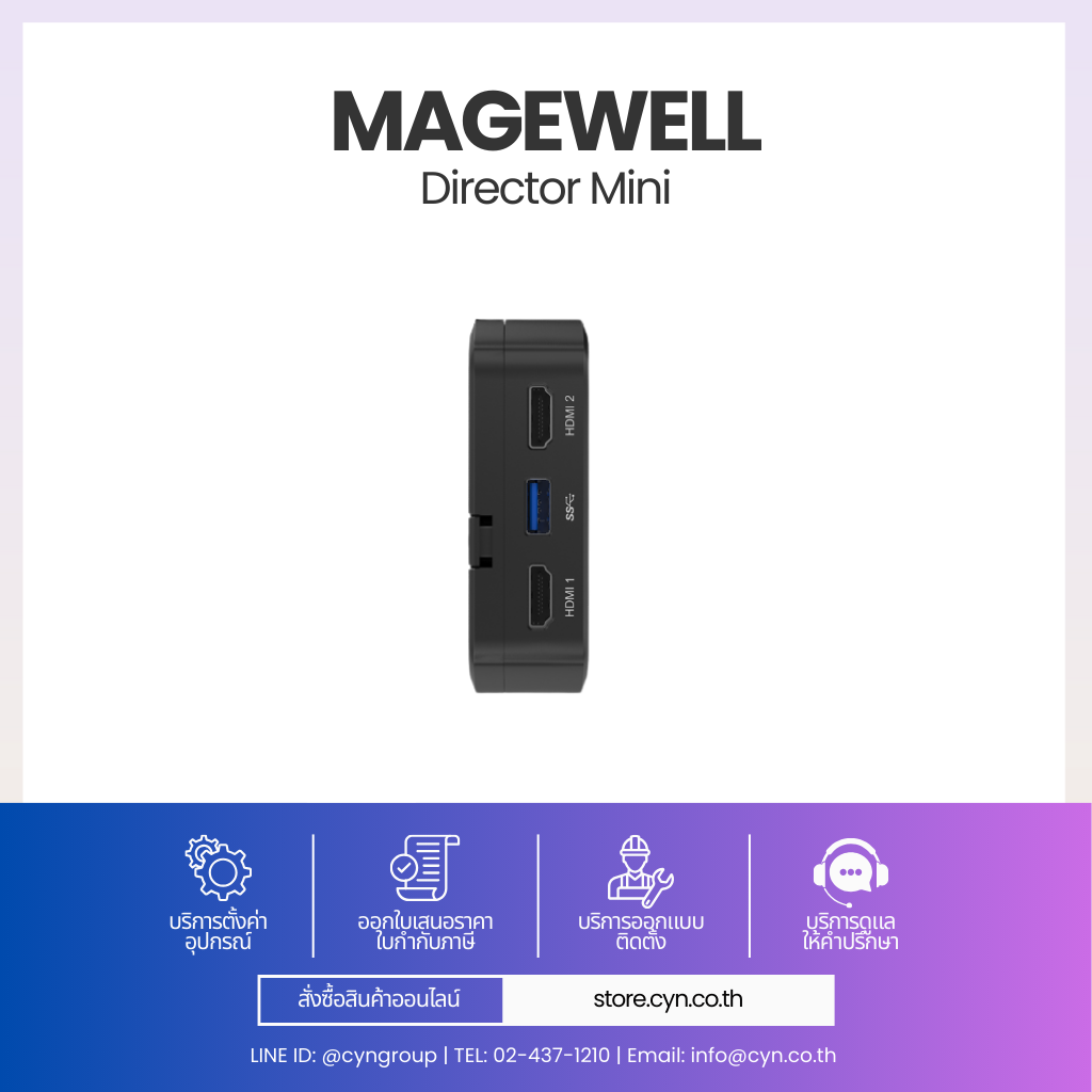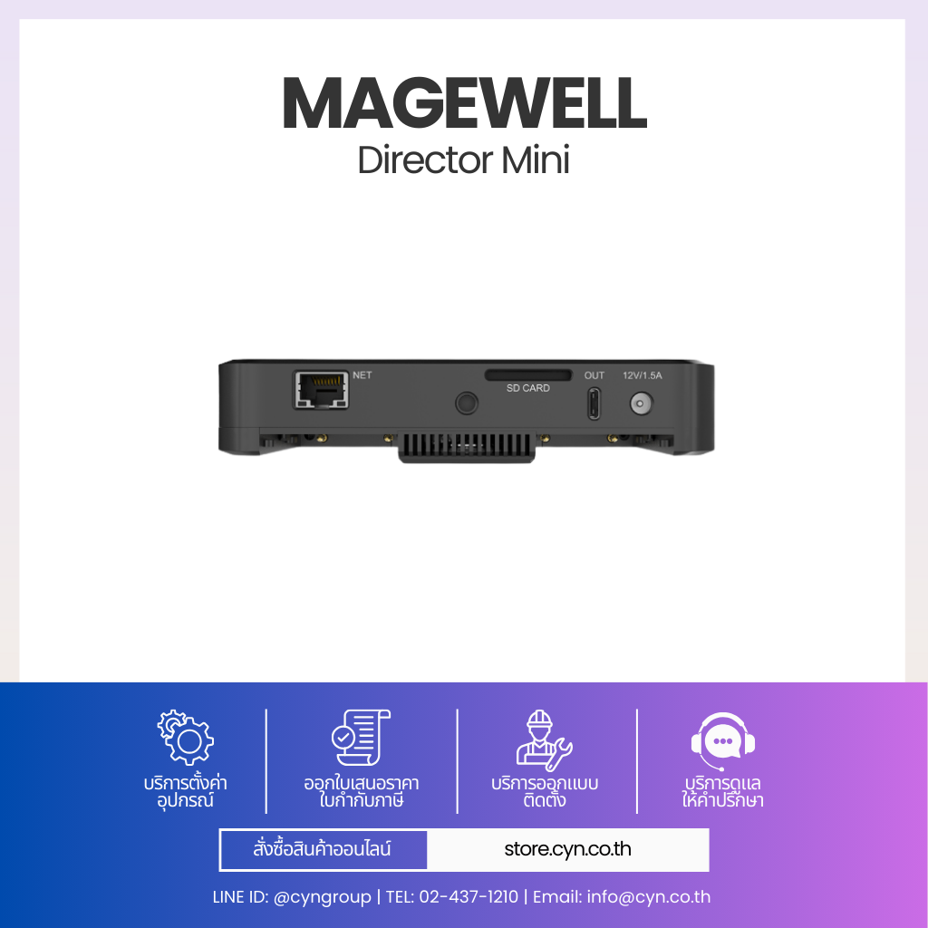 Magewell Director Mini ถูกออกแบบมาเพื่อผู้ใช้งานที่ต้องการ ระบบ Live Production แบบครบจบในเครื่องเดียว โดยรองรับอินพุตวิดีโอหลากหลาย ทั้ง HDMI, USB Camera, NDI®, SRT, RTMP และ Media File