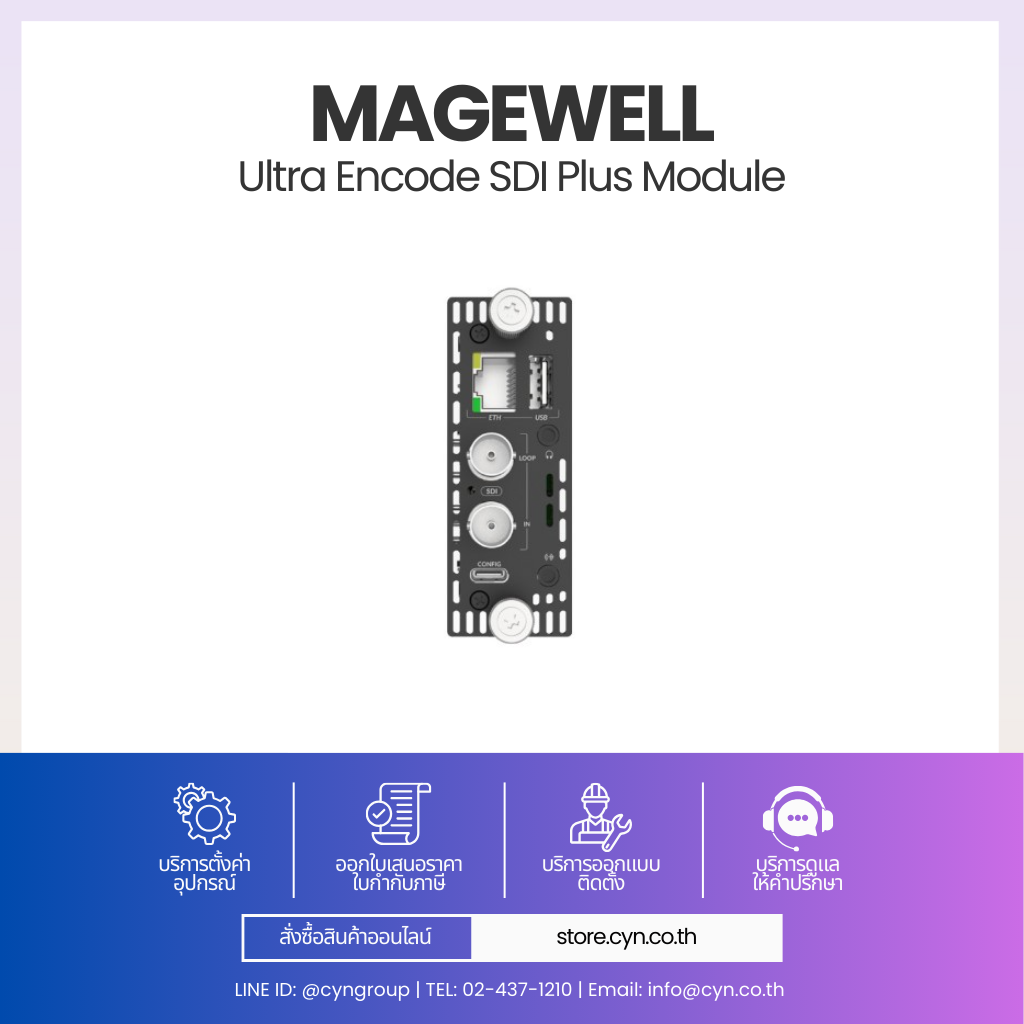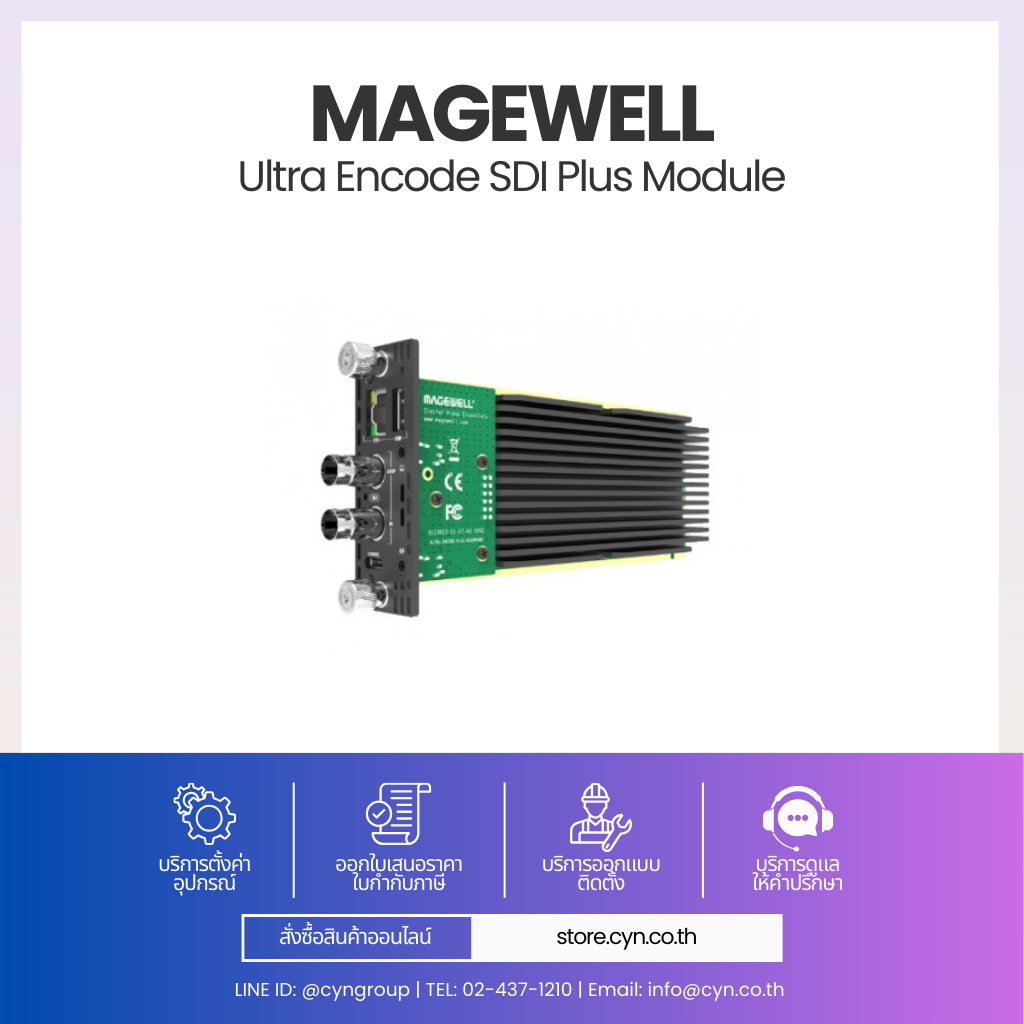โมดูลรองรับสัญญาณ SD-SDI / HD-SDI / 3G-SDI พร้อม SDI Loop-through สำหรับ Monitoring โดยไม่เพิ่ม Latency สามารถเข้ารหัสเป็นสตรีม IP ด้วย Codec คุณภาพสูง เช่น H.264 / H.265 (HEVC)
