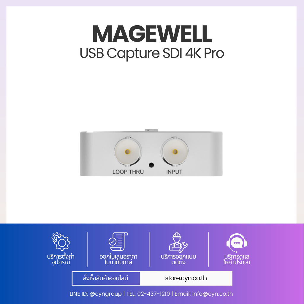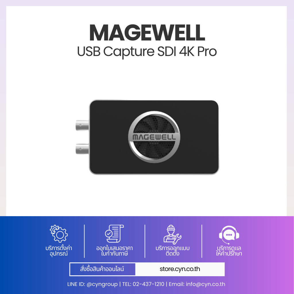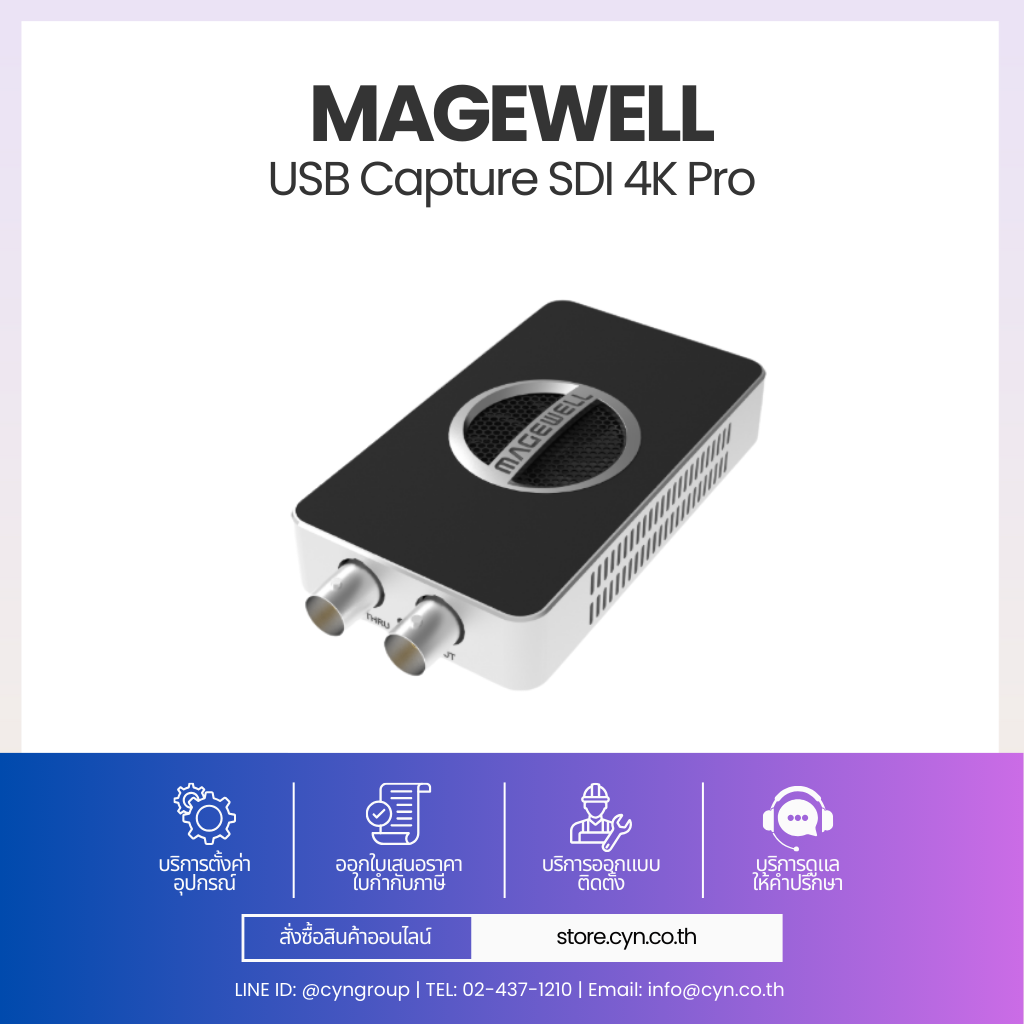Magewell USB Capture SDI 4K Pro ถูกออกแบบมาเพื่อตอบโจทย์งานวิดีโอระดับสูงที่ต้องการ จับสัญญาณ SDI 4K 60fps ผ่าน USB โดยไม่ต้องใช้การ์ด PCIe รองรับมาตรฐาน SD-SDI, HD-SDI, 3G-SDI, 6G-SDI และ 12G-SDI ผ่านพอร์ต BNC