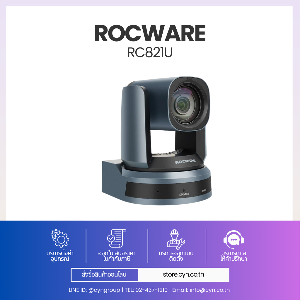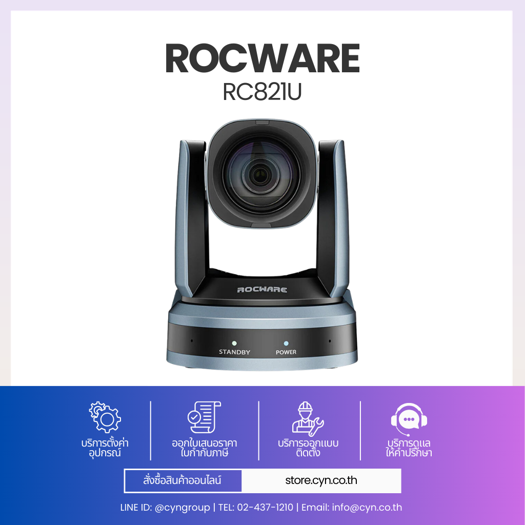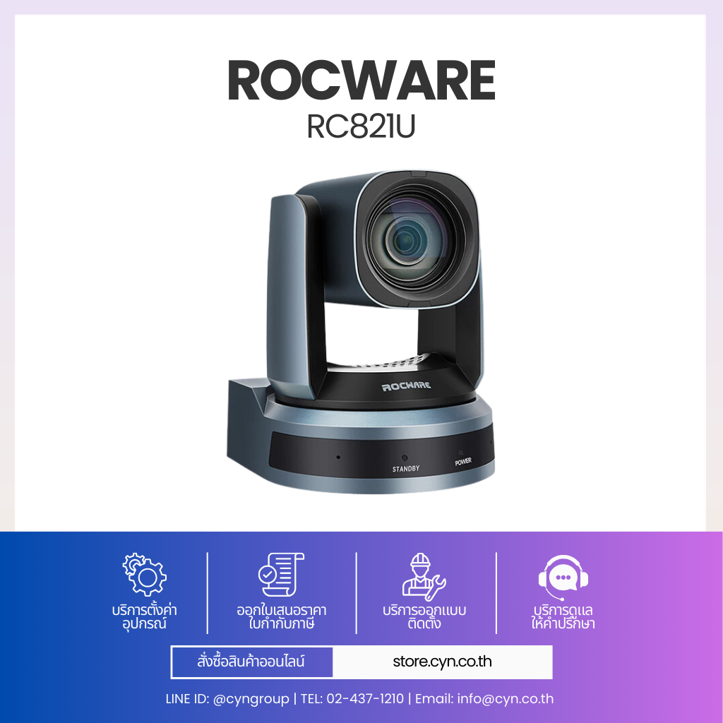 ROCWARE RC821U เป็นกล้อง PTZ คุณภาพสูง มาพร้อมเซนเซอร์ CMOS ขนาด 1/2.8” ความละเอียด 2.07 ล้านพิกเซล รองรับความละเอียดสูงสุด 1920×1080@60fps ให้ภาพคมชัดแม้ในสภาพแสงน้อย (SNR ≥55dB) รองรับการหมุนซ้าย-ขวา ±170° และก้ม-เงย -30° ถึง +90° พร้อมระบบ Auto Framing และ AI Intelligent Tracking รองรับการเชื่อมต่อ HDMI, USB 3.0, LAN (PoE) และ RS232 ใช้งานได้ทั้งแบบ USB Conference และ IP Streaming