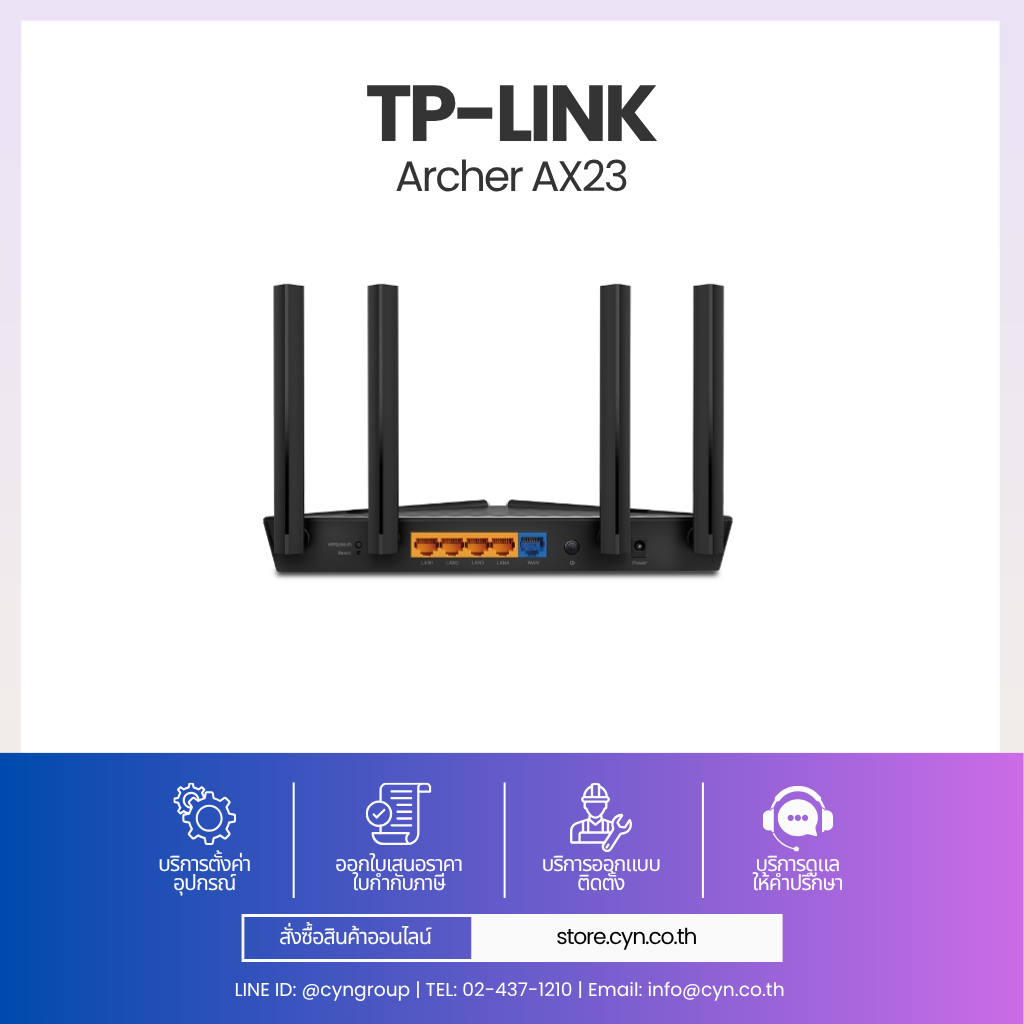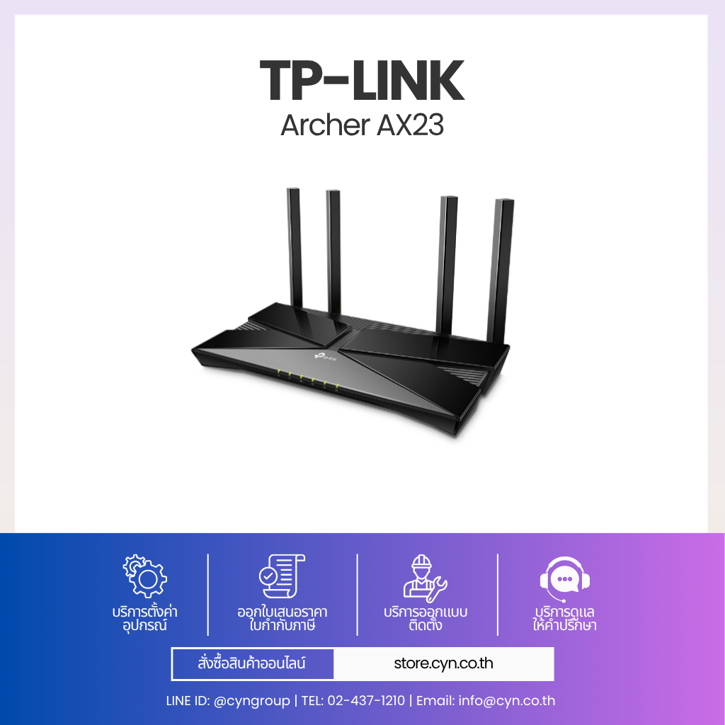 TP-Link Archer AX23 เป็นเราเตอร์ Wi-Fi 6 (802.11ax) แบบ Dual-Band ความเร็ว 1201 Mbps บนคลื่น 5GHz และ 574 Mbps บนคลื่น 2.4GHz รวมสูงสุด 1.8Gbps