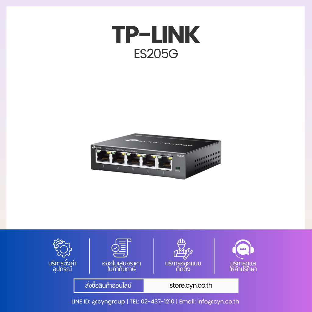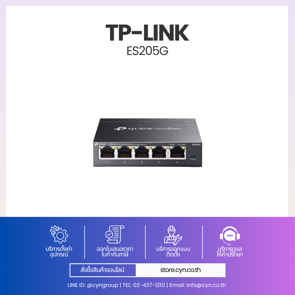 TP-Link ES205G เป็นสวิตช์ Managed 5 พอร์ต Gigabit รองรับมาตรฐาน IEEE 802.1Q VLAN, QoS (802.1p), IGMP Snooping และ Link Aggregation
