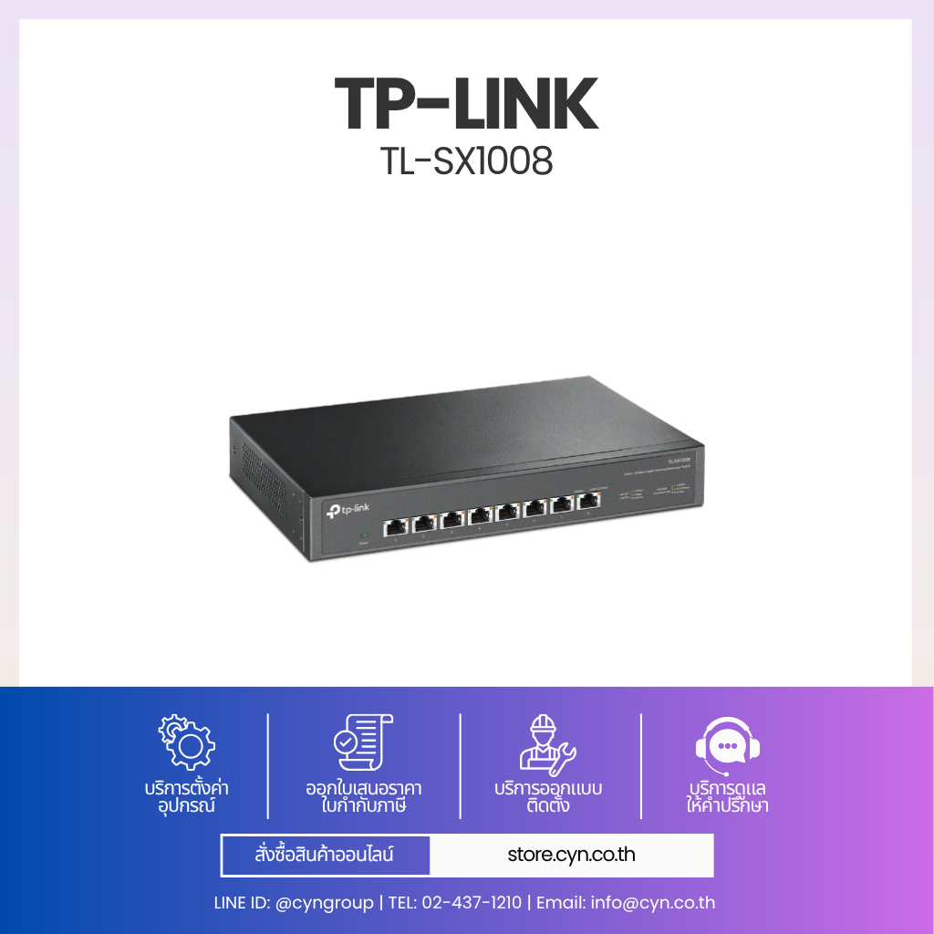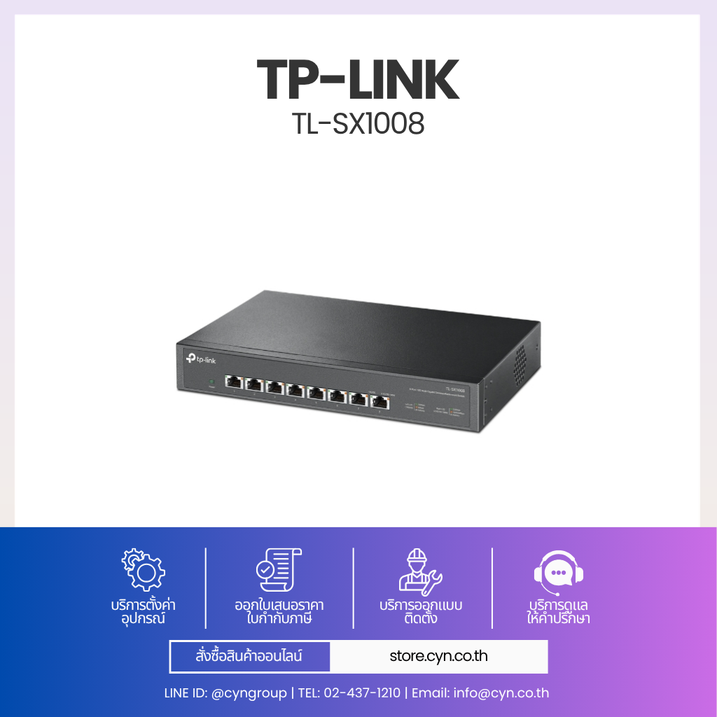 TP-Link TL-SX1008 เป็นสวิตช์ 10G Multi-Gigabit แบบ Unmanaged ที่ออกแบบมาสำหรับสำนักงานและระบบเครือข่ายความเร็วสูง