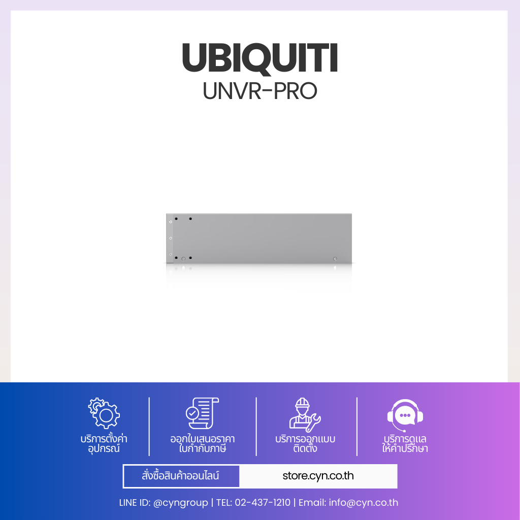 UNVR Pro เป็น NVR แบบ Rackmount ขนาด 2U สำหรับระบบ UniFi Protect รองรับฮาร์ดดิสก์ 7 ลูก พร้อมตัวเลือก RAID 1/5/10 เพื่อความปลอดภัยของข้อมูล รองรับการเชื่อมต่อ 1GbE และ 10GbE เหมาะสำหรับระบบกล้องขนาดใหญ่ที่ต้องการความจุและความเสถียรสูง