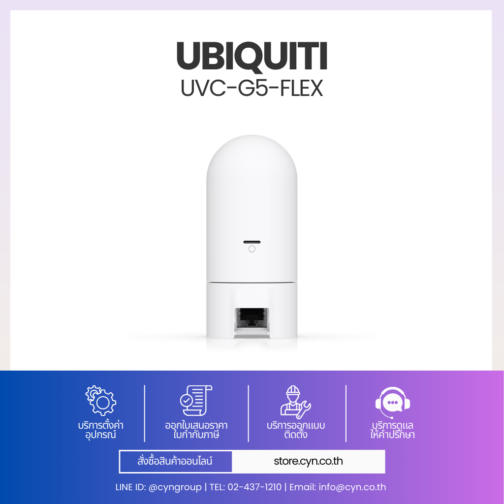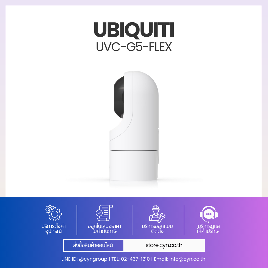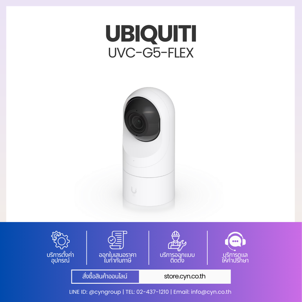 UVC-G5-Flex เป็นกล้อง UniFi Protect ดีไซน์กะทัดรัด น้ำหนักเบา ให้ภาพคมชัด 5MP มุมมองกว้าง รองรับ IR กลางคืน ใช้งานผ่าน PoE และติดตั้งได้ทั้งวางโต๊ะ ติดผนัง เพดาน หรือเสา เหมาะสำหรับบ้านและสำนักงาน