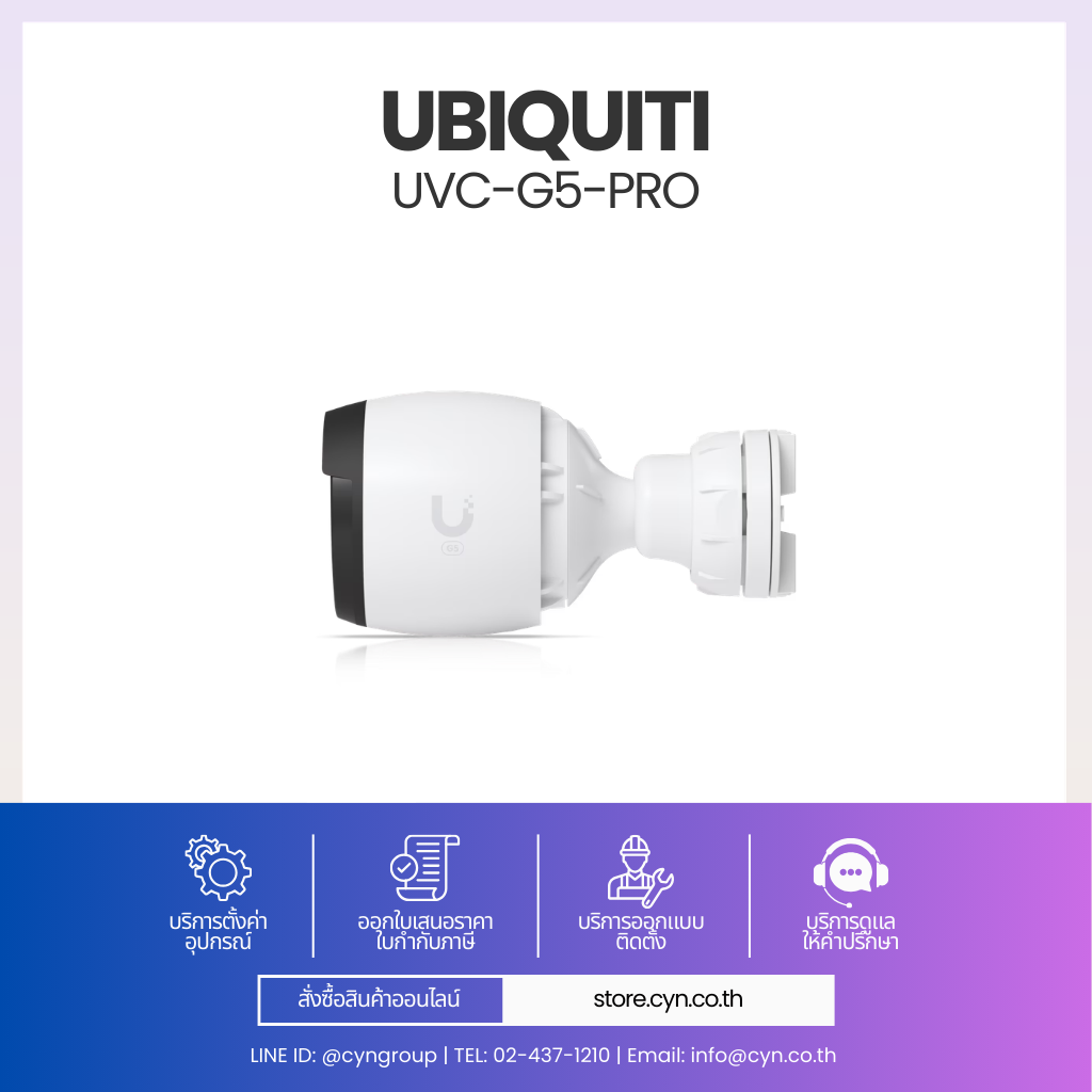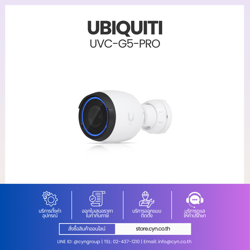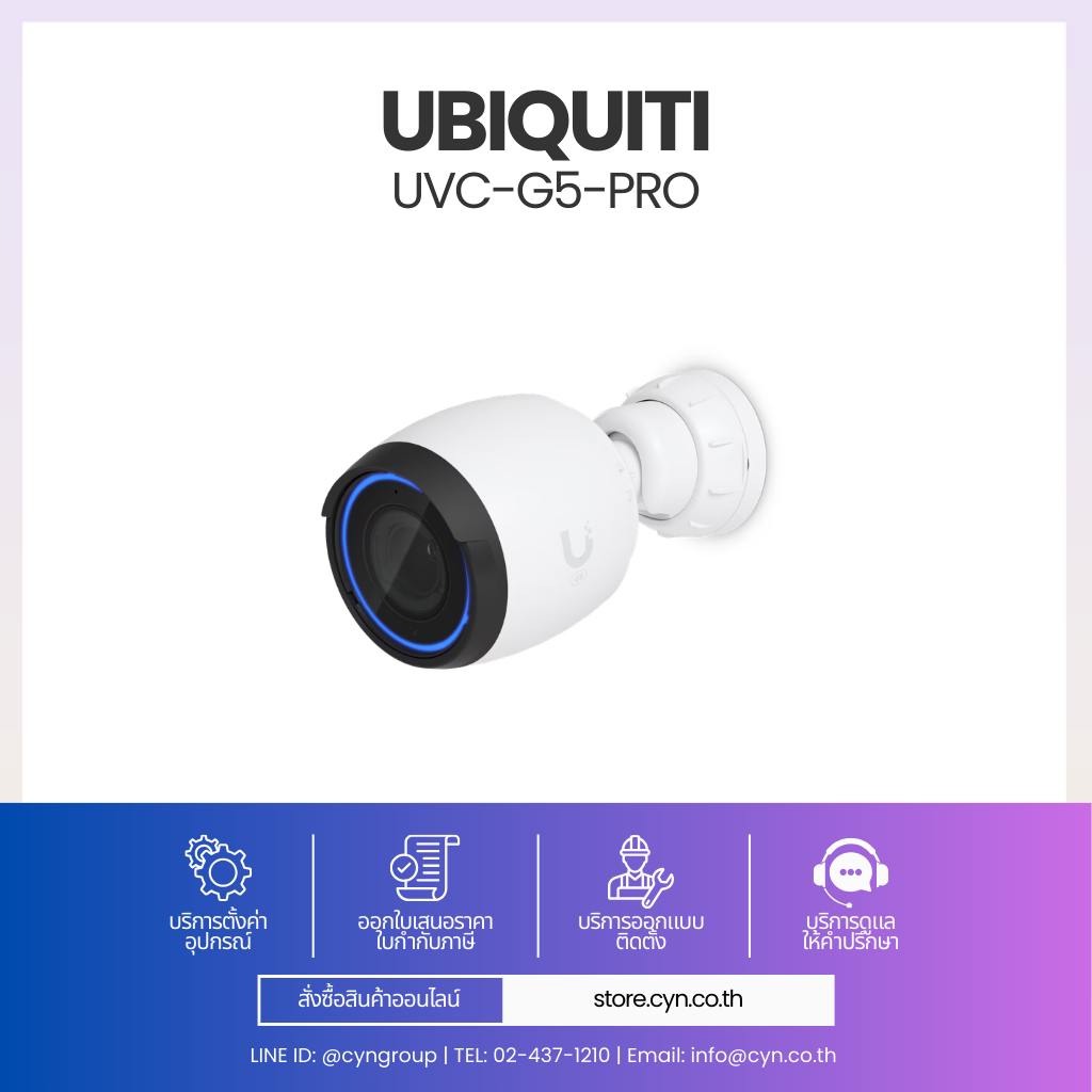 UVC-G5-Pro เป็นกล้อง UniFi Protect ระดับ 4K (3840 x 2160) ใช้เซนเซอร์ 1/2″ 8MP พร้อมเลนส์ซูม 4.1–12.3 มม. ให้ภาพคมชัด ปรับมุมมองได้ทั้ง Wide และ Zoom รองรับ IR สำหรับกลางคืน โครงสร้างแข็งแรง IP65 เหมาะสำหรับงานรักษาความปลอดภัยระดับองค์กร