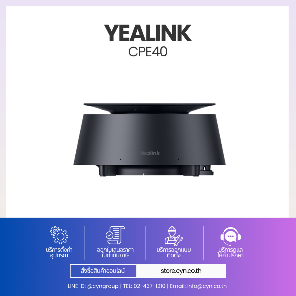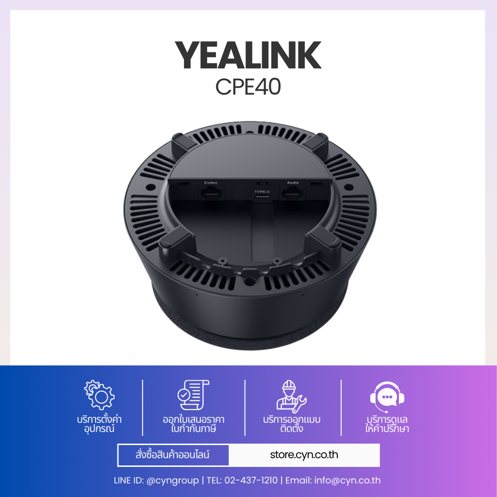 CPE40 ถูกออกแบบมาเพื่อทำงานร่วมกับอุปกรณ์หลัก เช่น Yealink CP50, UVC85 หรือ VC Host (MeetingEye Series) โดยเชื่อมต่อแบบ Daisy-Chain เพื่อขยายพื้นที่รับเสียงและกระจายเสียงให้ครอบคลุมมากขึ้น