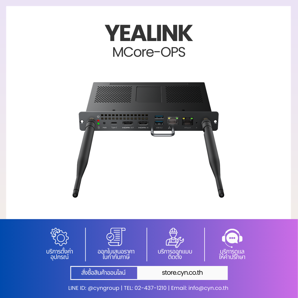 Yealink MCore-OPS คือโมดูลคอมพิวเตอร์แบบ OPS (Open Pluggable Specification) ออกแบบสำหรับ Interactive Whiteboard และ MeetingBoard โดยเฉพาะ มาพร้อม Windows 11 IoT Enterprise, CPU Intel Core Gen 11 และรองรับ TPM 2.0 / CEC เพื่อการทำงานที่ปลอดภัยและสะดวกยิ่งขึ้น