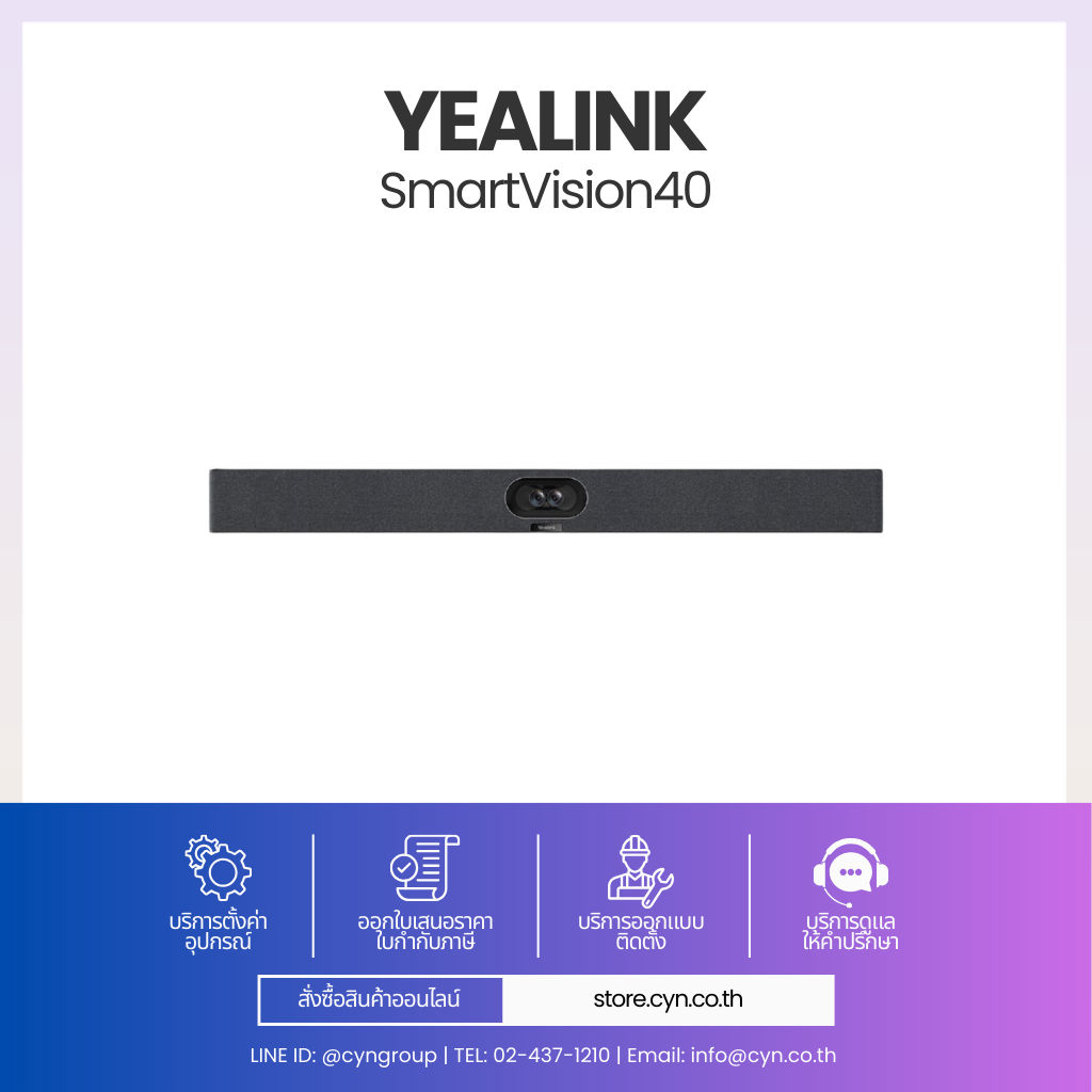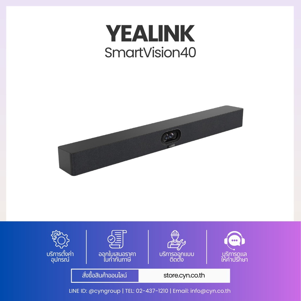 SmartVision 40 รวมกล้อง ไมโครโฟน และลำโพงไว้ในอุปกรณ์เดียว ติดตั้งง่าย เพียงเชื่อมต่อไฟและเครือข่ายก็พร้อมใช้งาน