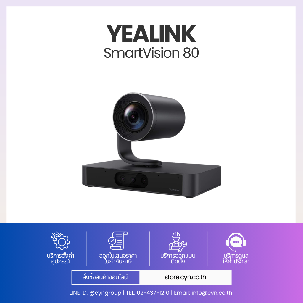 SmartVision 80 มาพร้อมชุดกล้อง 4 เลนส์ ประกอบด้วย PTZ Camera และกล้อง Electronic 3 ตัว (Panoramic + Telephoto 2 ตัว) เพื่อให้ครอบคลุมพื้นที่ประชุมได้ครบทุกมุม