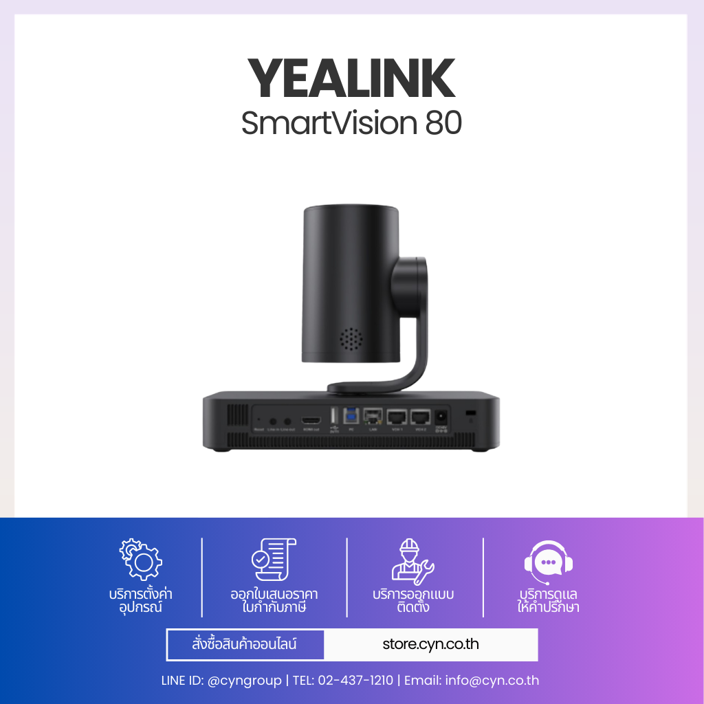 รองรับการเชื่อมต่อกับอุปกรณ์เสียง Yealink เช่น VCM35/36, CM20 และ MSpeaker Pro พร้อมเทคโนโลยี AI Noise Suppression และ Dereverb เพื่อคุณภาพเสียงระดับมืออาชีพ