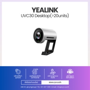 Yealink UVC30 Room คือกล้องประชุม Ultra HD 4K แบบ USB ออกแบบสำหรับห้องประชุมขนาดเล็ก มาพร้อมมุมมองกว้าง 120° และระบบ Auto-Framing อัจฉริยะ ให้ภาพคมชัด สีสันแม่นยำ รองรับ Microsoft Teams Rooms และ Zoom Rooms