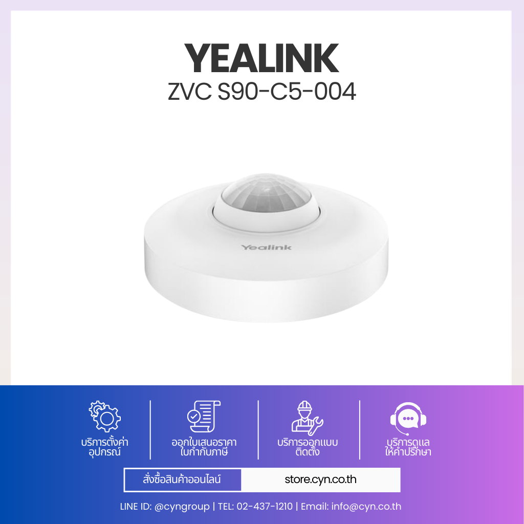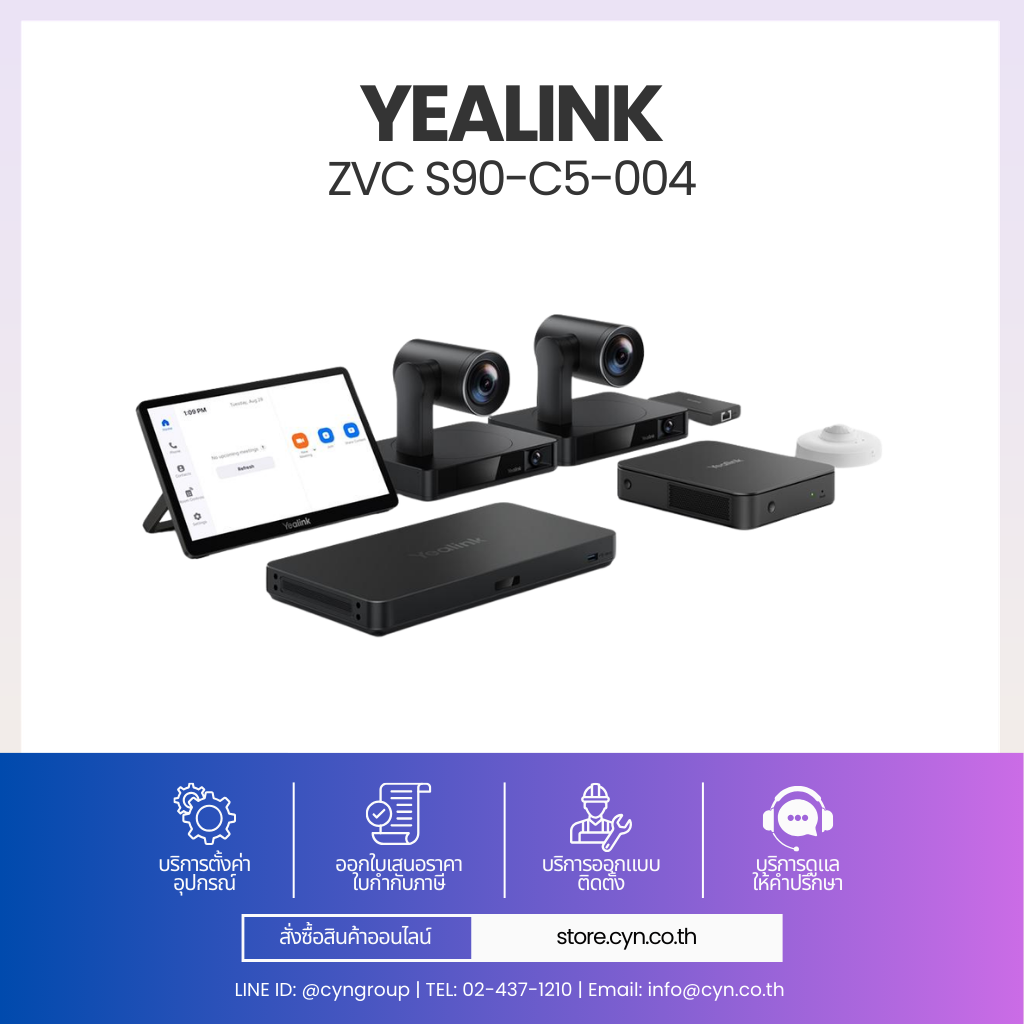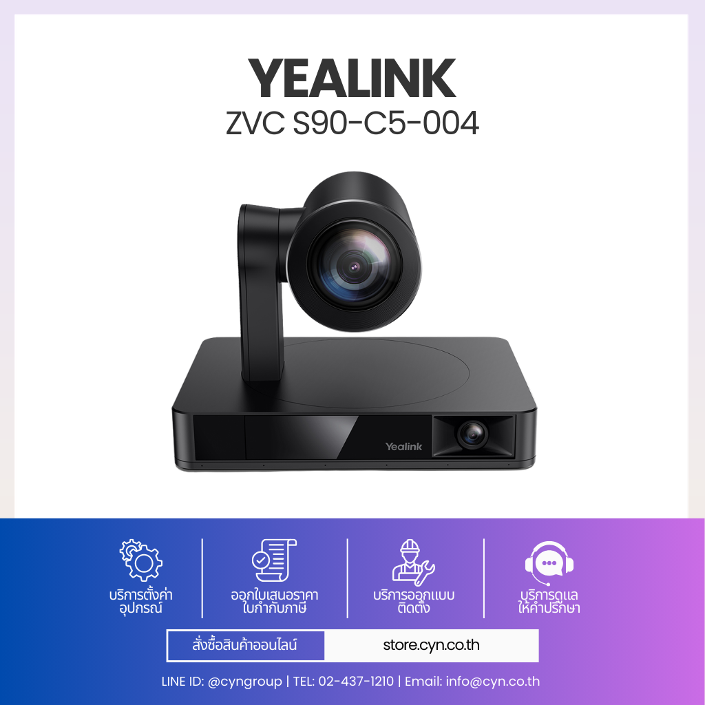 ZVC S90-C5-004 ออกแบบมาสำหรับห้องประชุมขนาดใหญ่และห้องสัมมนา รองรับการติดตั้งแบบ Multi-Camera ผ่าน AVHub ที่สามารถเชื่อมต่อกล้อง Yealink ได้สูงสุด 9 ตัว พร้อมระบบ Multi-Speaker Tracking